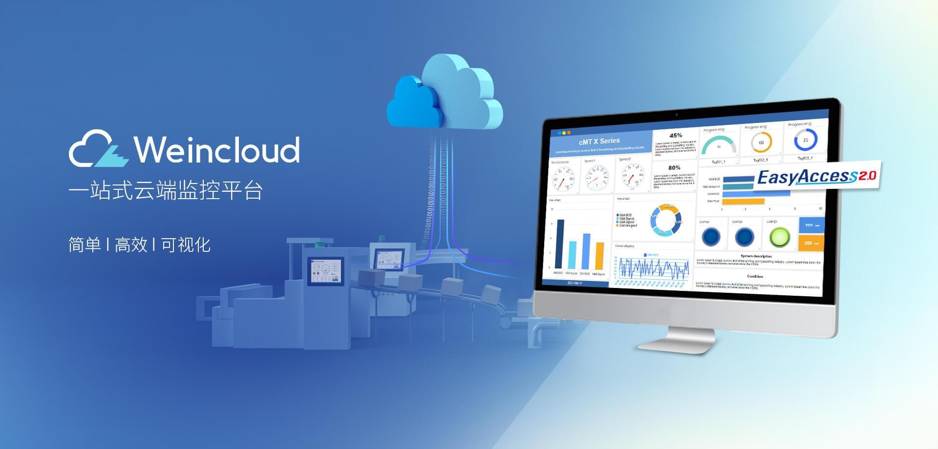 Weincloud 集結EasyAccess2.0遠程監(jiān)控服務及Dashboard云端儀表服務,將設備資料數據上云并以視覺化呈現(xiàn),協(xié)助管理者實時掌控現(xiàn)場產線狀態(tài)。